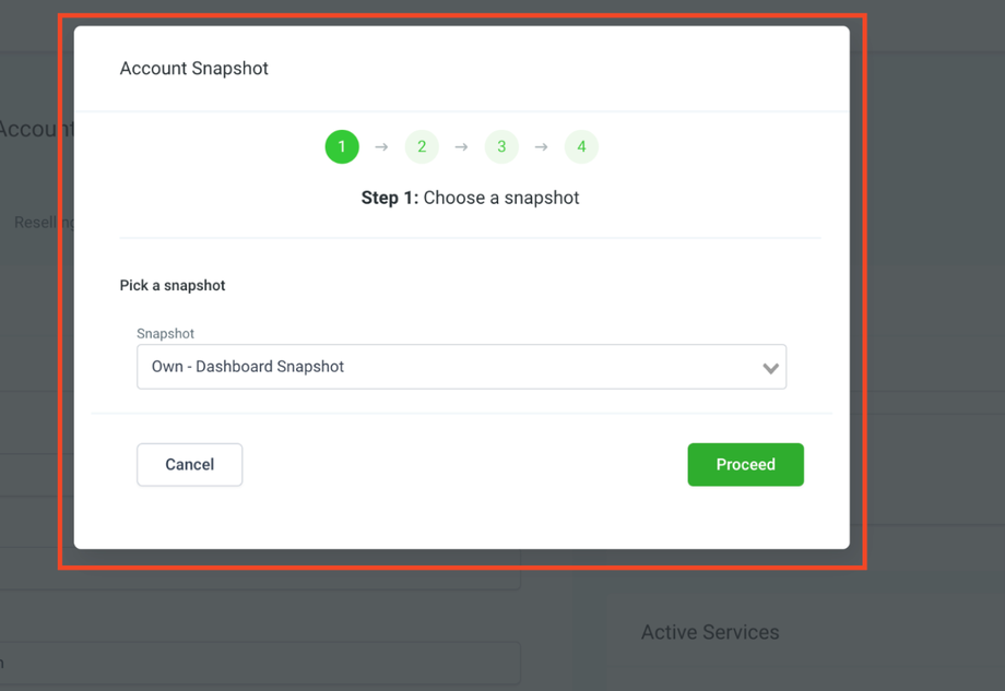 Nun können Sie entweder einen neuen Sub-Account erstellen, um den neu erstellten Snapshot mit den gewünschten Werbekampagnen zu laden, oder einen bestehenden Sub-Account aus der Liste auswählen.