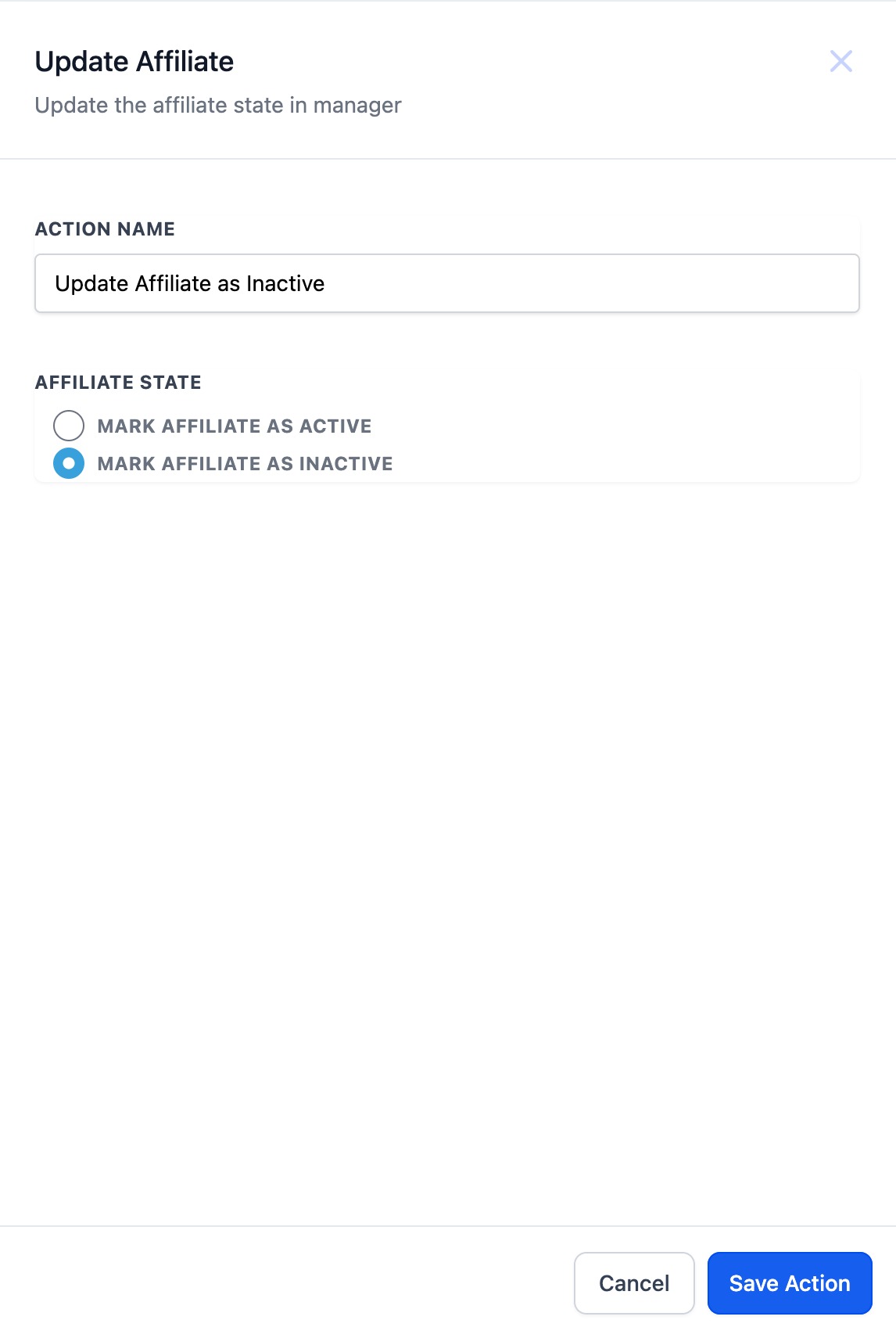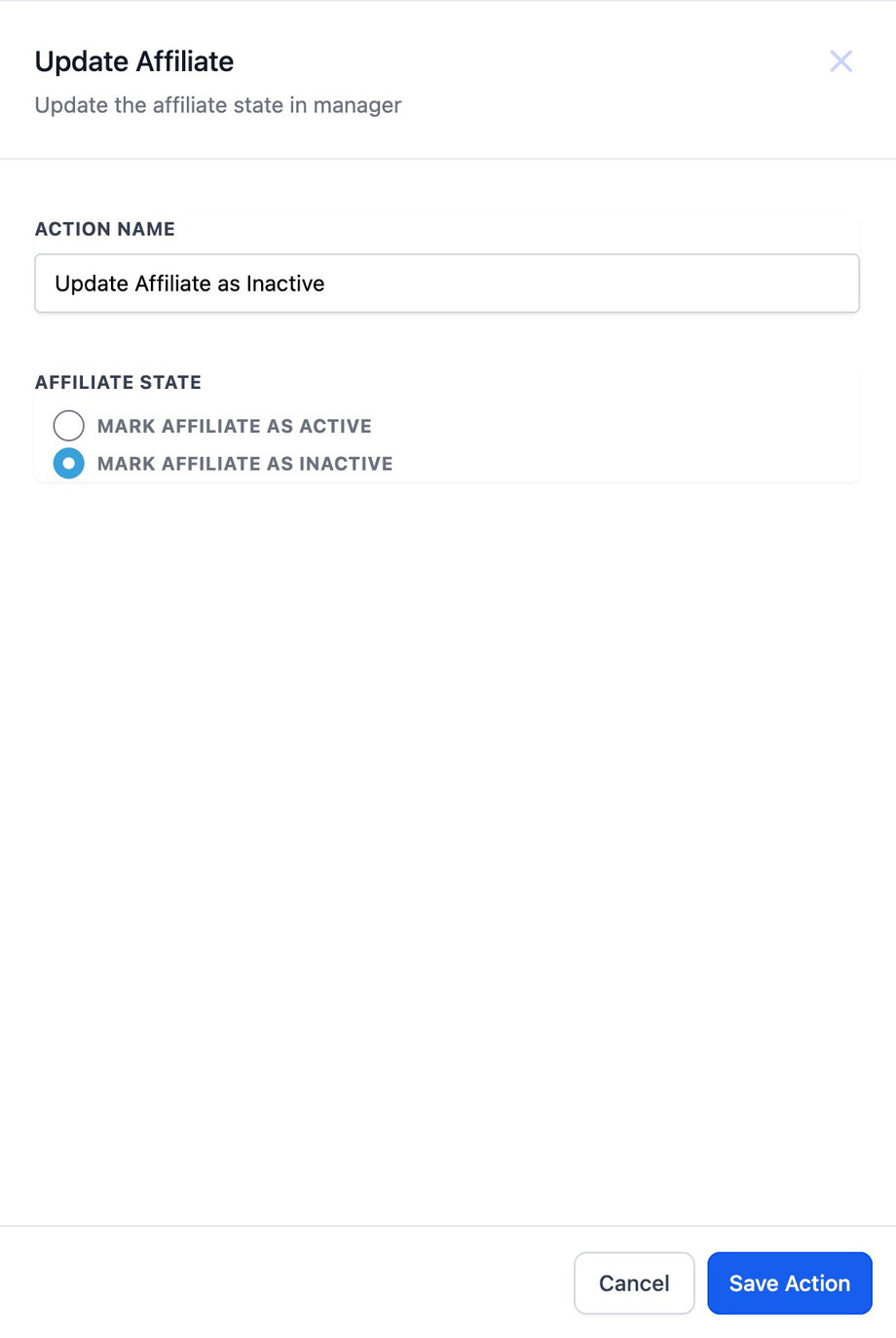 Ermöglicht es, den Status eines Affiliates automatisch auf „active“ oder „inactive“ zu setzen.