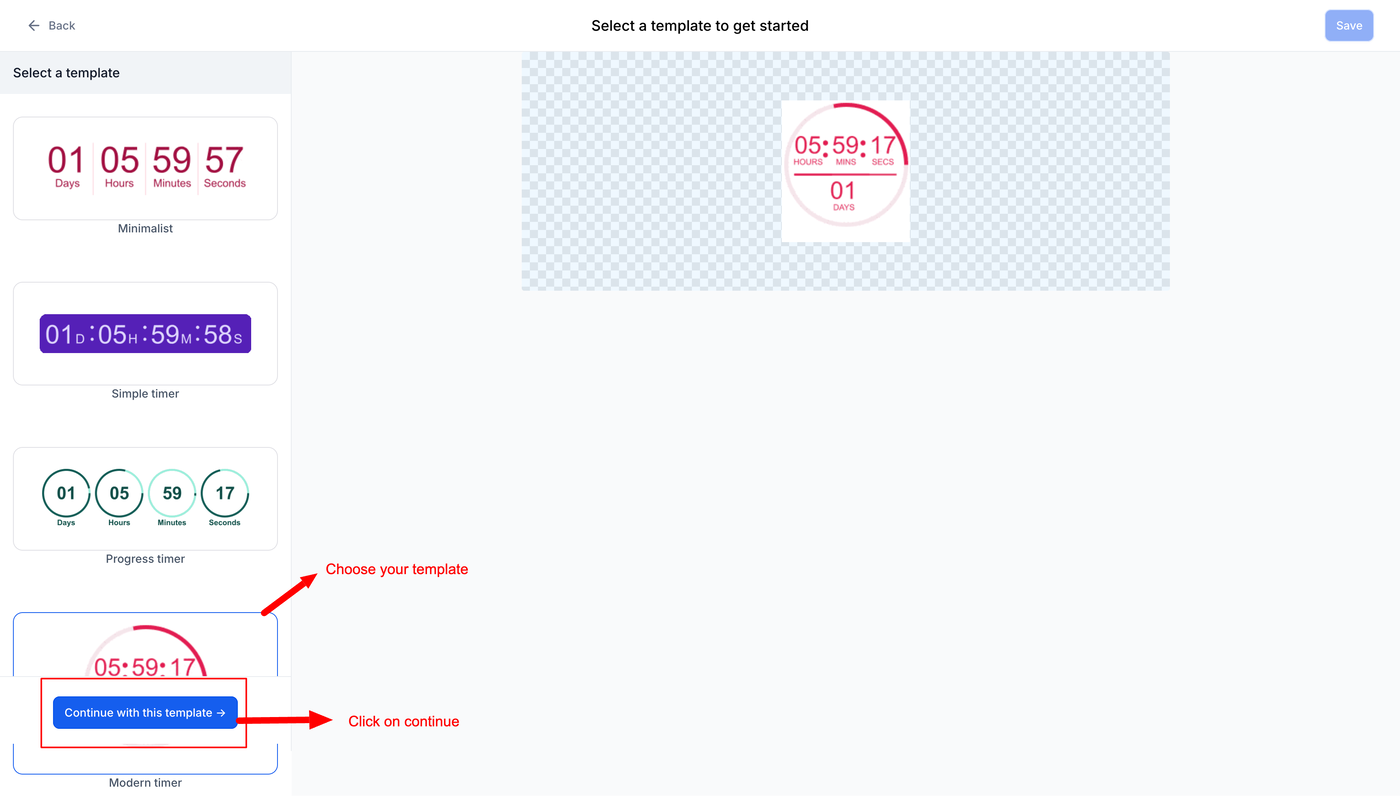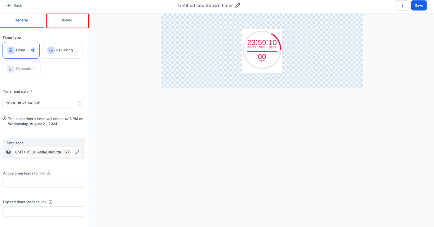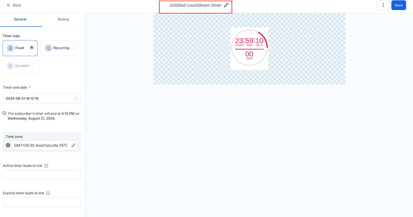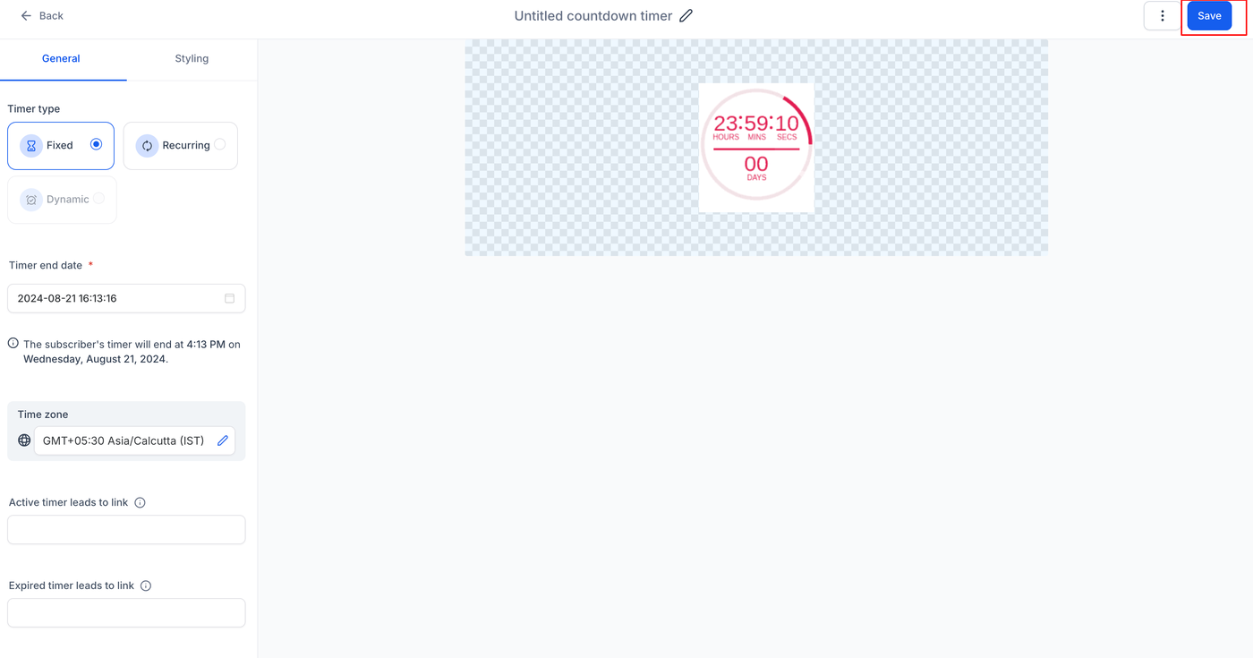 Klicke auf „Save“, um deinen Countdown-Timer zu finalisieren und zu aktivieren.