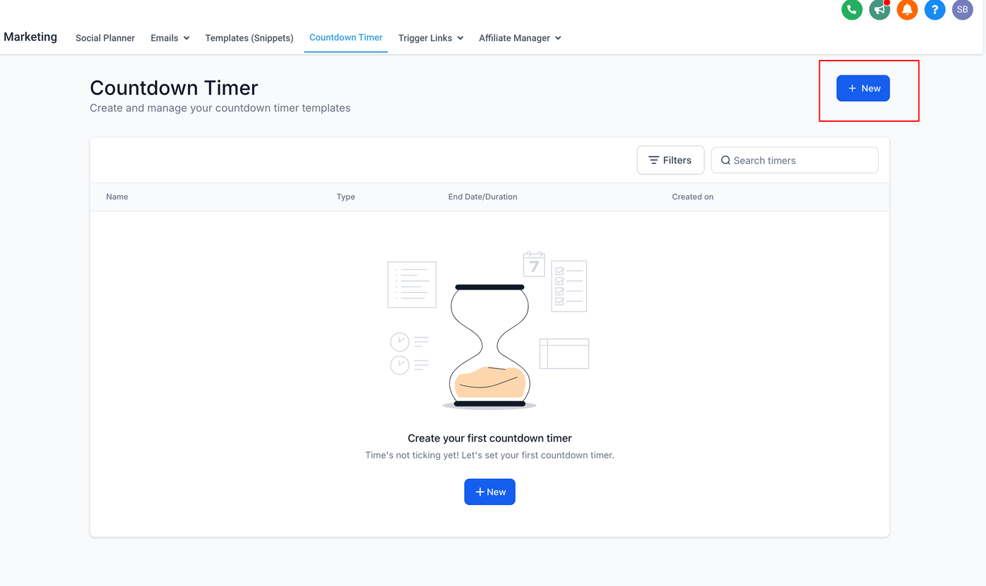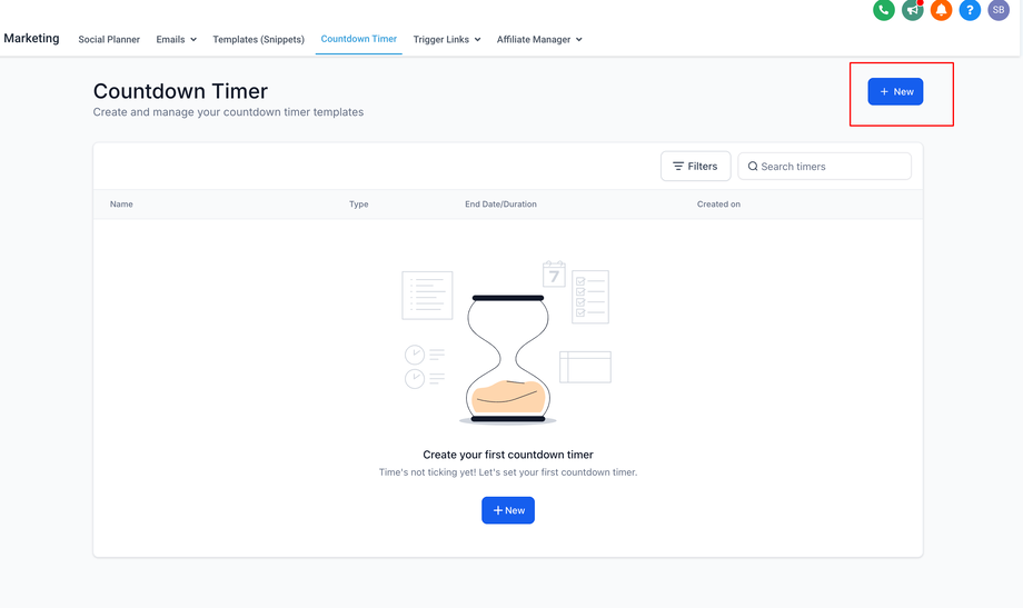 Klicke auf die Schaltfläche „Neu“, um deinen Timer zu erstellen.