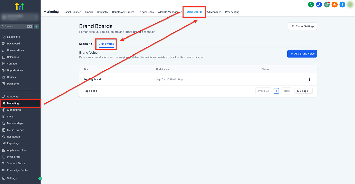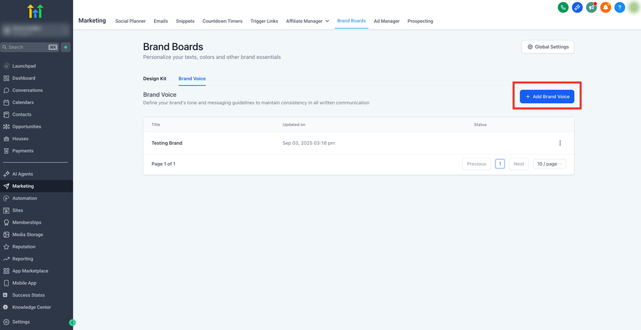 Du kannst verschiedene Brand Voices für Produkte, Zielgruppen oder Kampagnen erstellen.