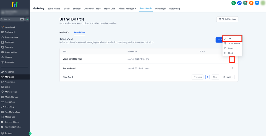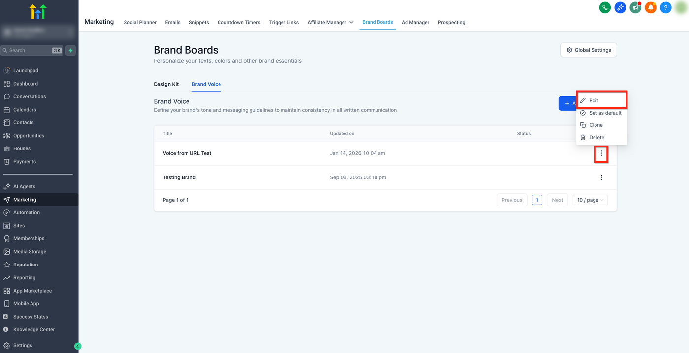 Nach der automatischen Erstellung kannst du deine Brand Voice jederzeit weiter verfeinern.