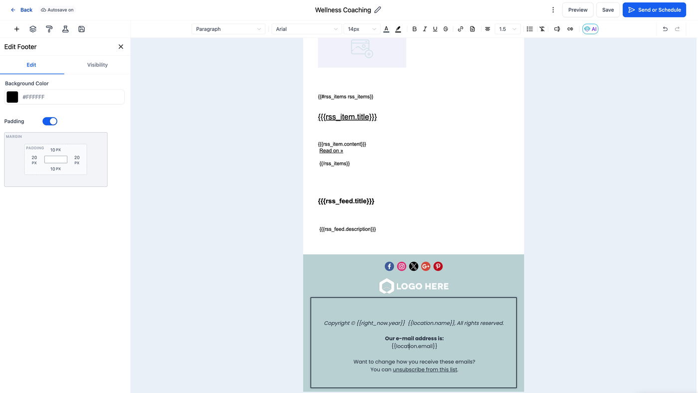 Q: Wie passe ich den Footer an das Design meiner E-Mail an?