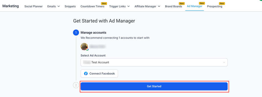 Sie sind nun bereit, Google-Kampagnen zu erstellen, indem Sie auf „Get Started“ klicken.