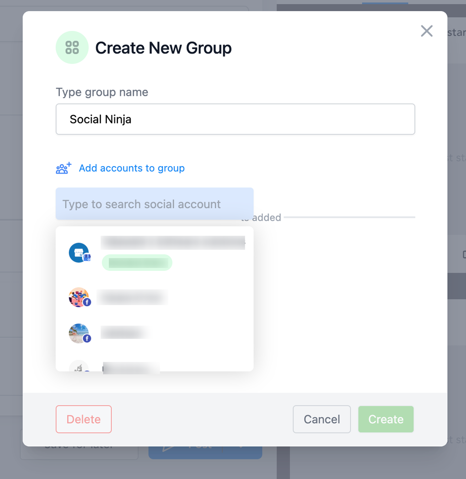 Schritt 3: Klicken Sie auf „Konten zur Gruppe hinzufügen“ und wählen Sie Ihre Social-Kanäle aus