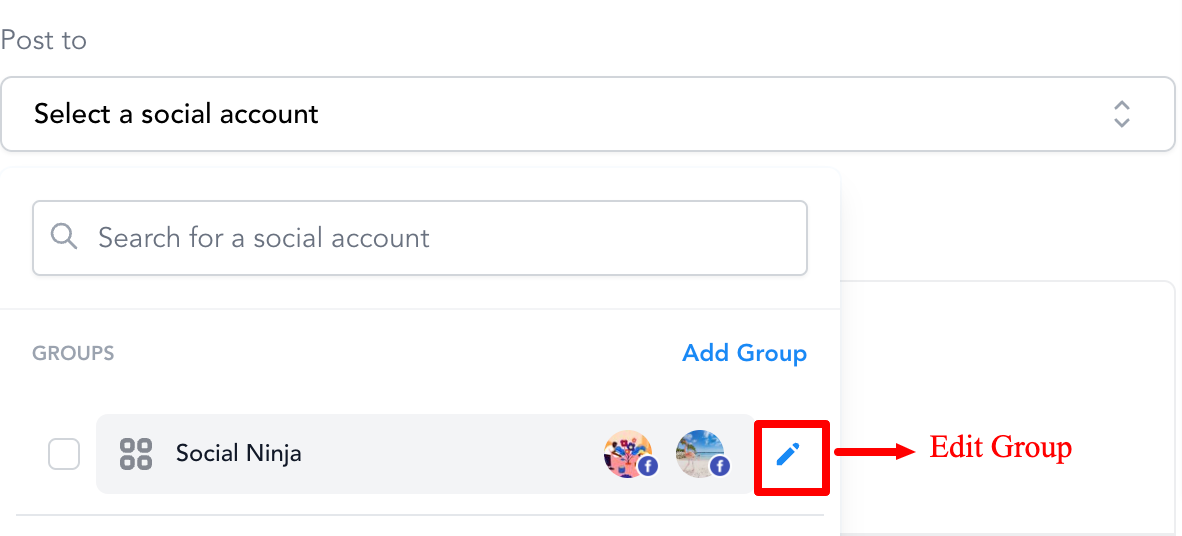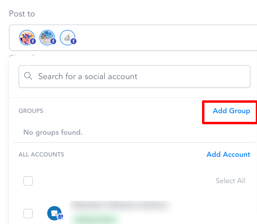 Es gibt Zeiten, in denen mehrere Social-Media-Profile oder Netzwerke vorhanden sind. Es wird schwierig, jedes Mal die Social-Profile auszuwählen, wenn ein neuer Beitrag erstellt wird. Mit der Funktion „Soziale Gruppierung“ wird es deutlich schneller, alle auf einmal auszuwählen.