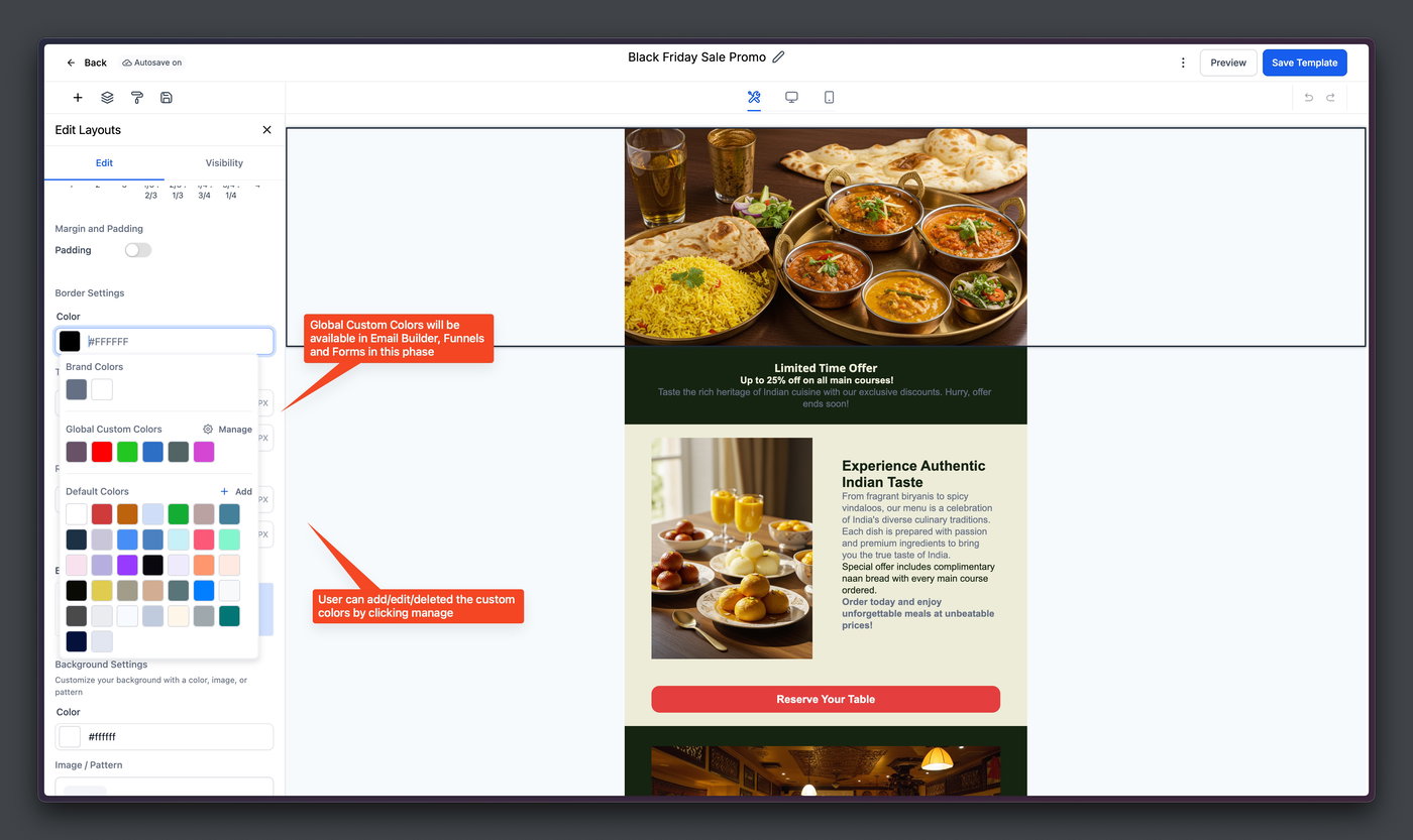 Agenturen können Funnels und E-Mails klonen und durch Aktualisieren der Global Colors neue Standorte oder Kunden schnell umbranden.