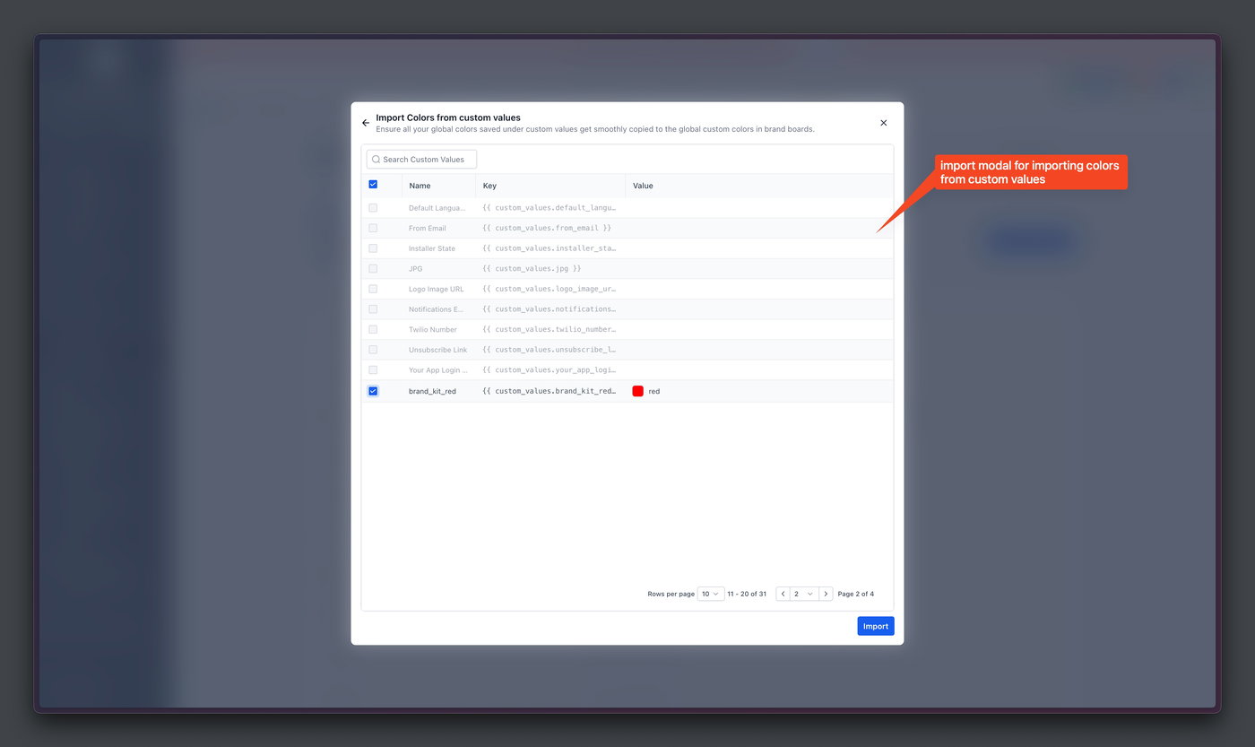 Du kannst sie aus dem Bereich Custom Values in die Global Settings importieren.