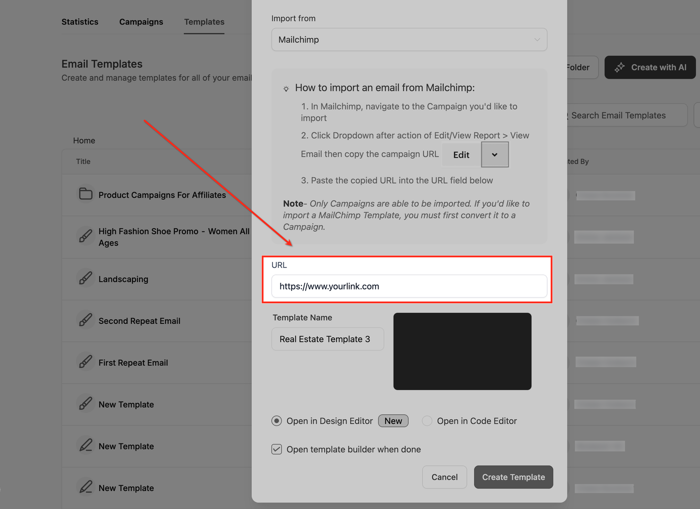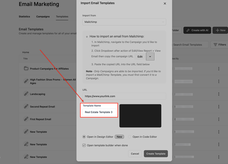 Was bedeutet das Importieren einer Mailchimp-Vorlage?