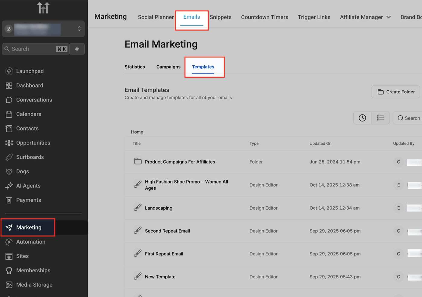 Um eine gespeicherte Vorlage zu importieren, musst du zuerst eine Kampagne mit dieser Vorlage erstellen und dann die Kampagnen-URL verwenden. Nur Kampagnen haben eine URL, die vom HighLevel-Importtool verarbeitet werden kann.