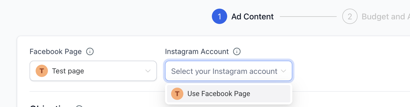 A: Wenn kein Instagram-Konto mit der ausgewählten Facebook-Seite verbunden ist, kann der Nutzer „Use Facebook page“ aus dem Instagram-Konto-Dropdown auswählen. Ihre Instagram-Anzeige verwendet dann den Namen, das Profilbild und andere Details Ihrer Facebook-Seite.