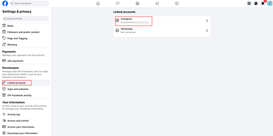 Schritt 3: Überprüfen Sie die Verbindung in der Meta Business Suite