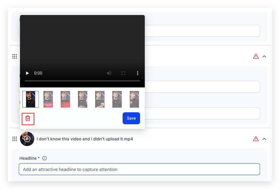 Klicke auf das hochgeladene Video und wähle das gewünschte Vorschaubild aus.