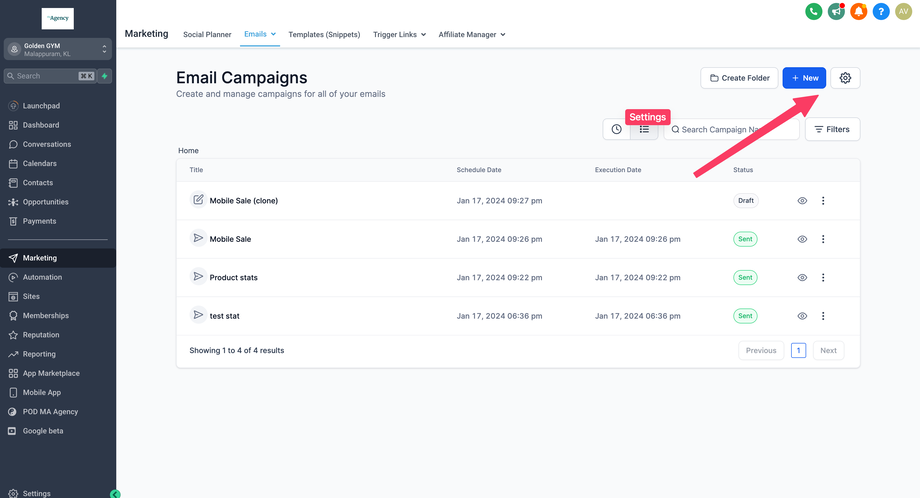 Navigieren Sie zum Bereich E-Mail-Marketing.