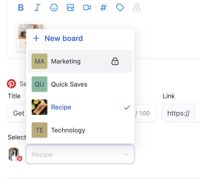 Du wirst aufgefordert, ein Pinterest-Board auszuwählen.