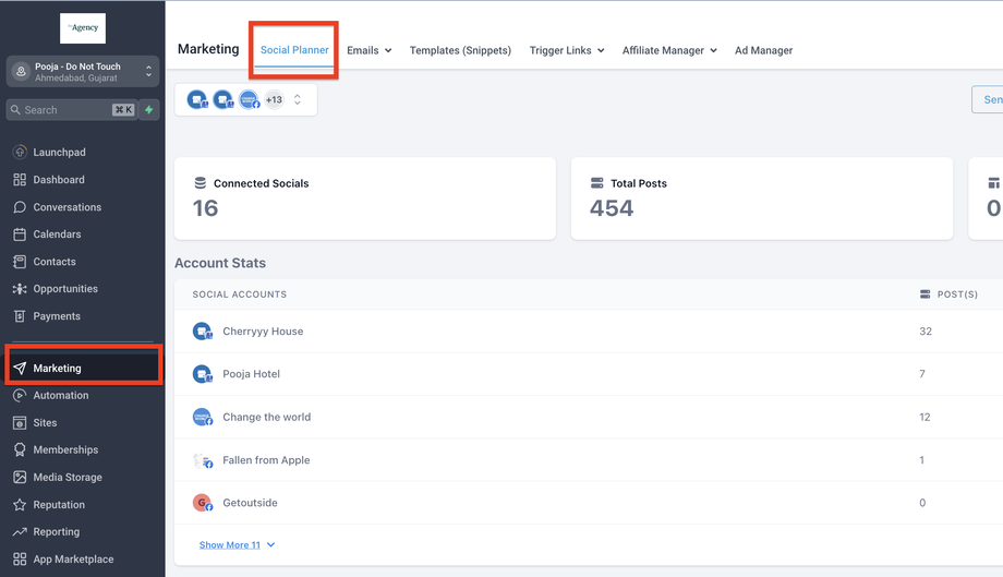 Navigiere zu Marketing > Social Planner.