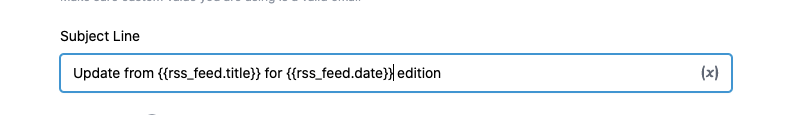 Hinweis: Die vier Custom RSS <channel>-Variablen können auch im Betrefffeld verwendet werden.