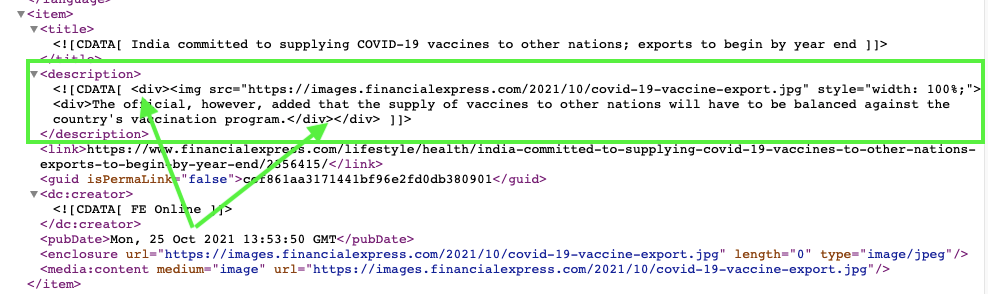 | Zusammenfassung des RSS-Artikels im HTML-Format |