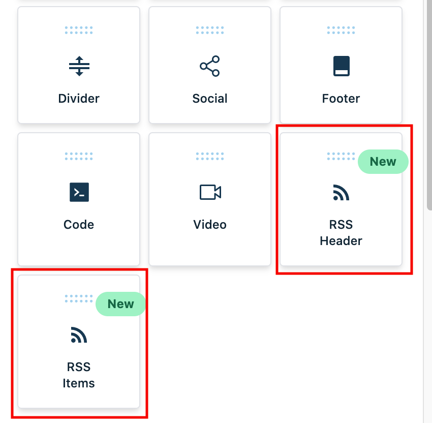 Die RSS-Elemente im HighLevel Email Builder ermöglichen es, automatisch E-Mails mit dynamisch eingefügtem Inhalt zu versenden, wenn ein neuer RSS-Artikel (Real Simple Syndication) veröffentlicht wird.