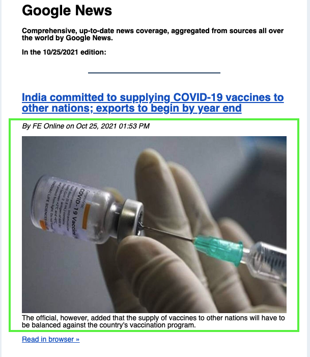 Der Inhalt der RSS-E-Mail zeigt HTML-Tags wie <p> an.