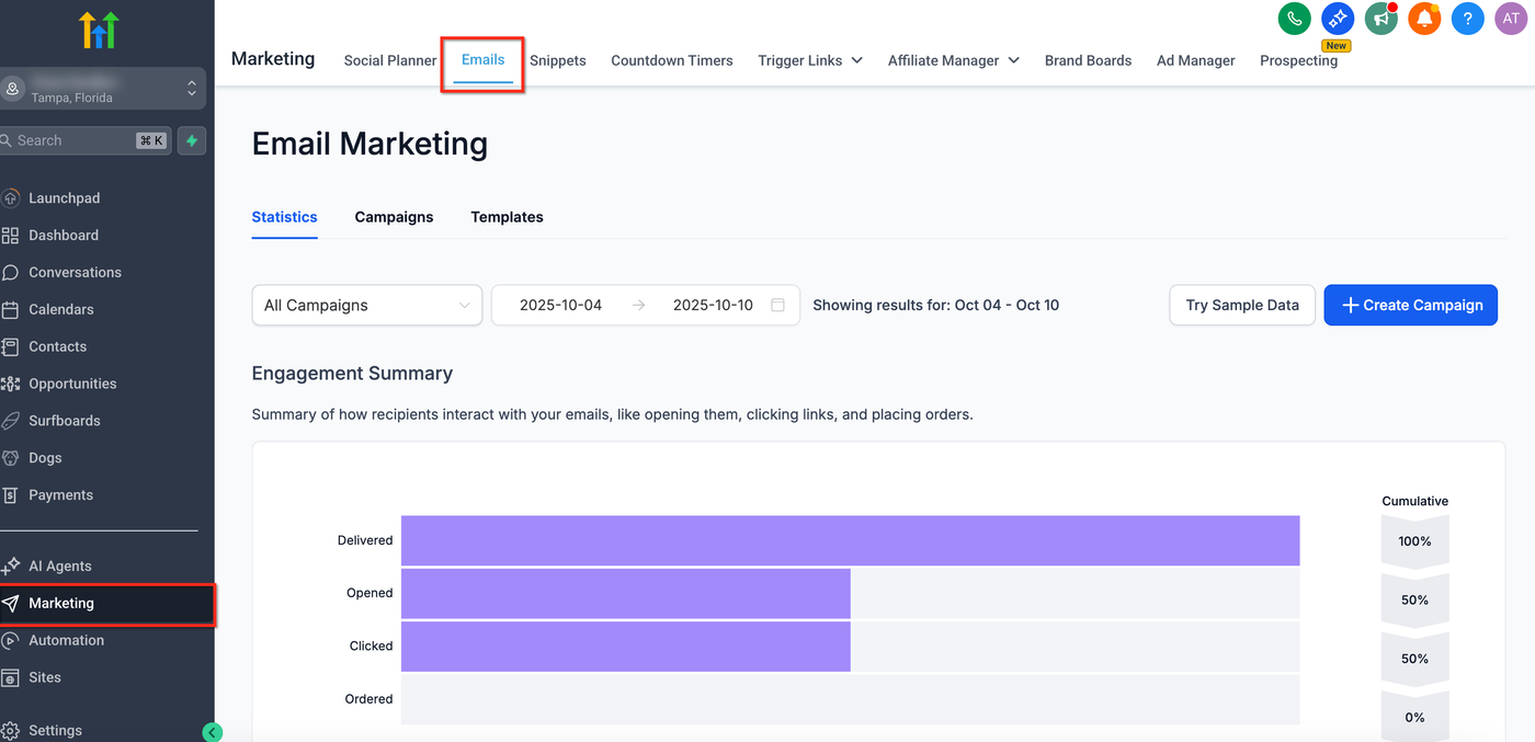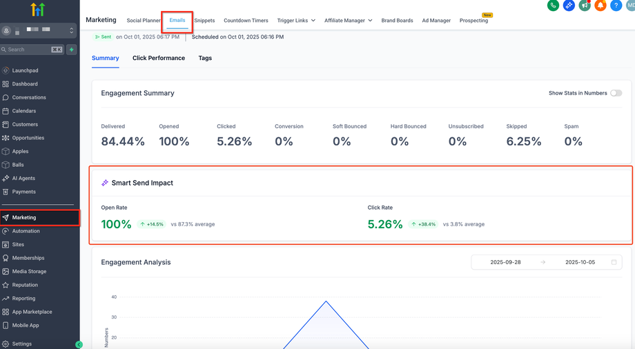 Smart Send funktioniert nur, wenn HighLevel über ausreichend aktuelle Daten verfügt, um eine genaue Prognose zu erstellen.