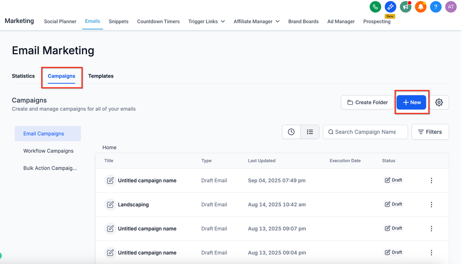 Klicken Sie auf Kampagnen → Neue Kampagne erstellen.