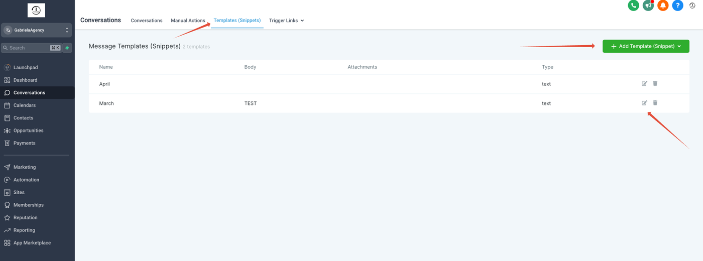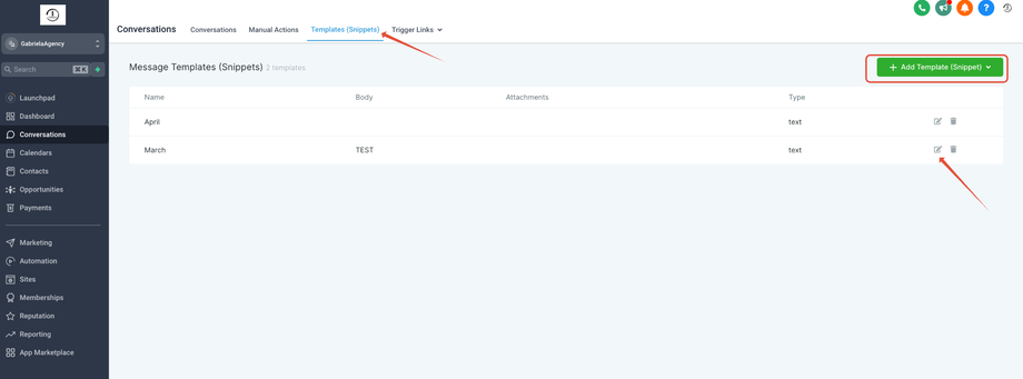 Gehe in deinem Subaccount auf Conversations.