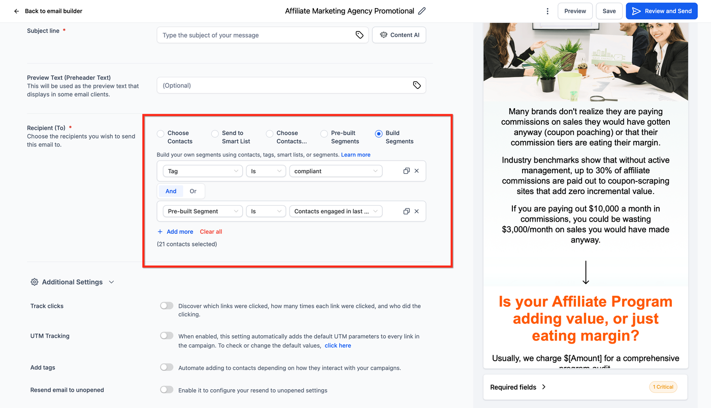 Dieser Artikel erklärt, wie du Segmente in HighLevel für deine E-Mail-Kampagnen erstellst. Segmente ermöglichen es, Kontakte basierend auf Echtzeit-Bedingungen wie Tags, Aktivität oder Standort zu filtern. Sie aktualisieren sich automatisch, sodass deine Zielgruppe immer relevant und aktuell ist.