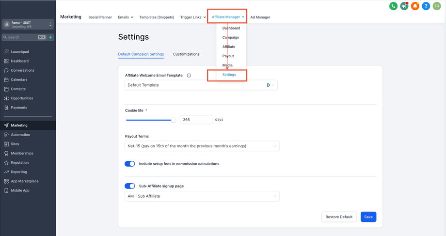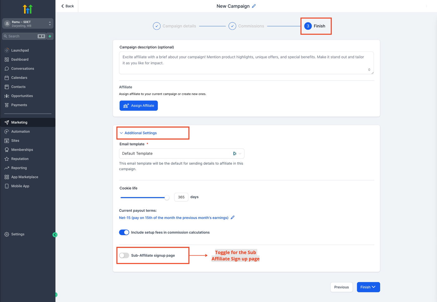 Aktivieren Sie „Sub-Affiliate-Anmeldeseite“.