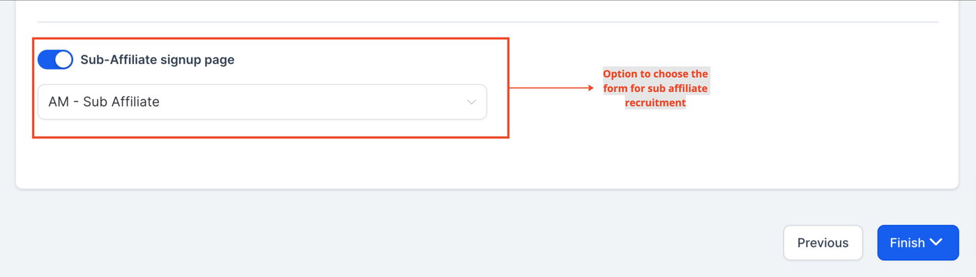 Wählen Sie das Formular aus, das Sie für Sub-Affiliate-Anmeldungen verwenden möchten.