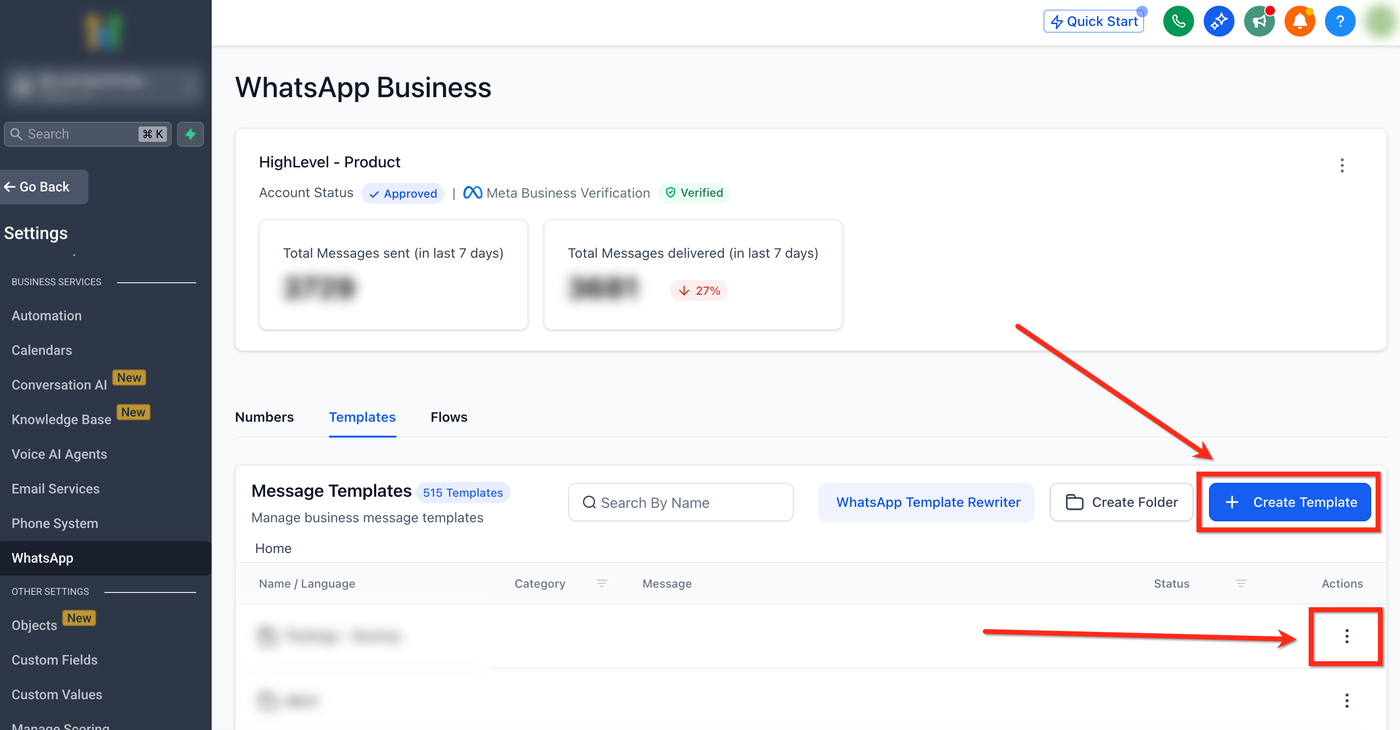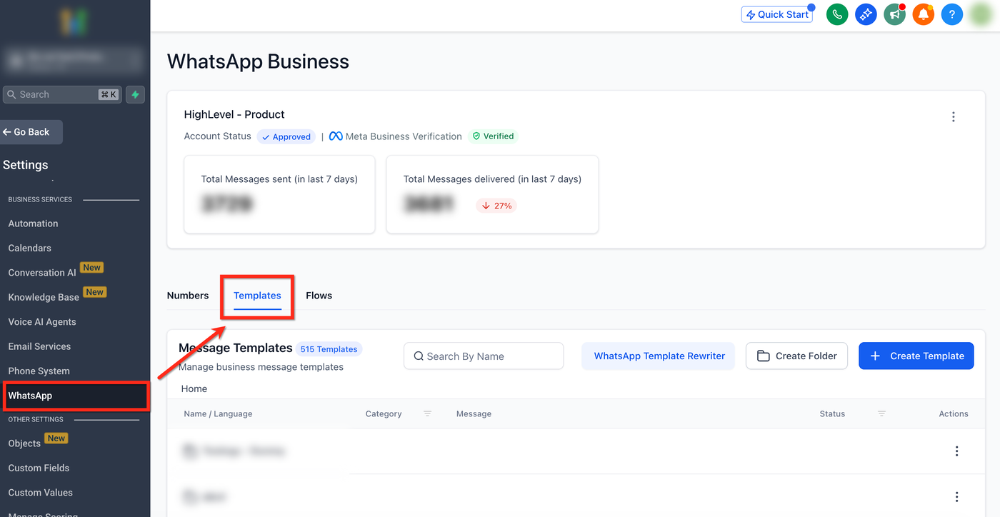 Schritt 1: Zu WhatsApp Templates navigieren
