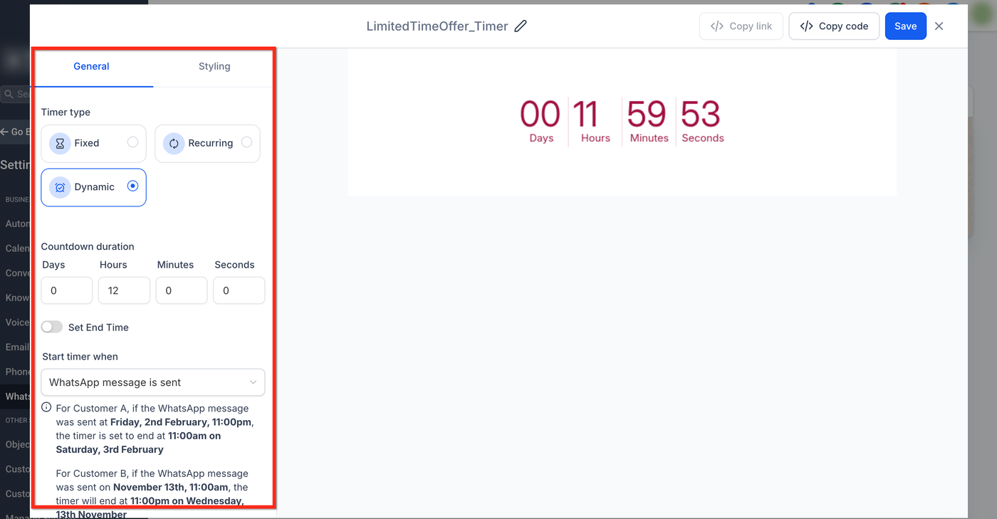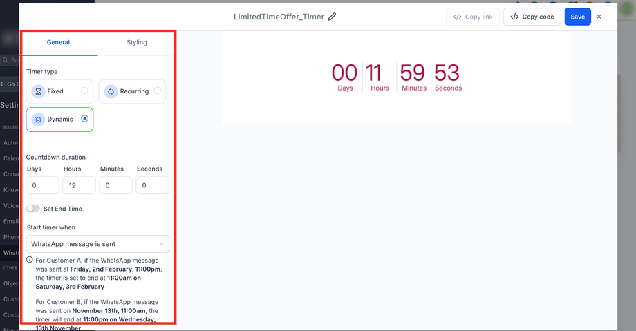 Erzeuge echte Dringlichkeit in deinen WhatsApp-Kampagnen, indem du Live-Countdown-Timer zu deinen Nachrichtenvorlagen hinzufügst.