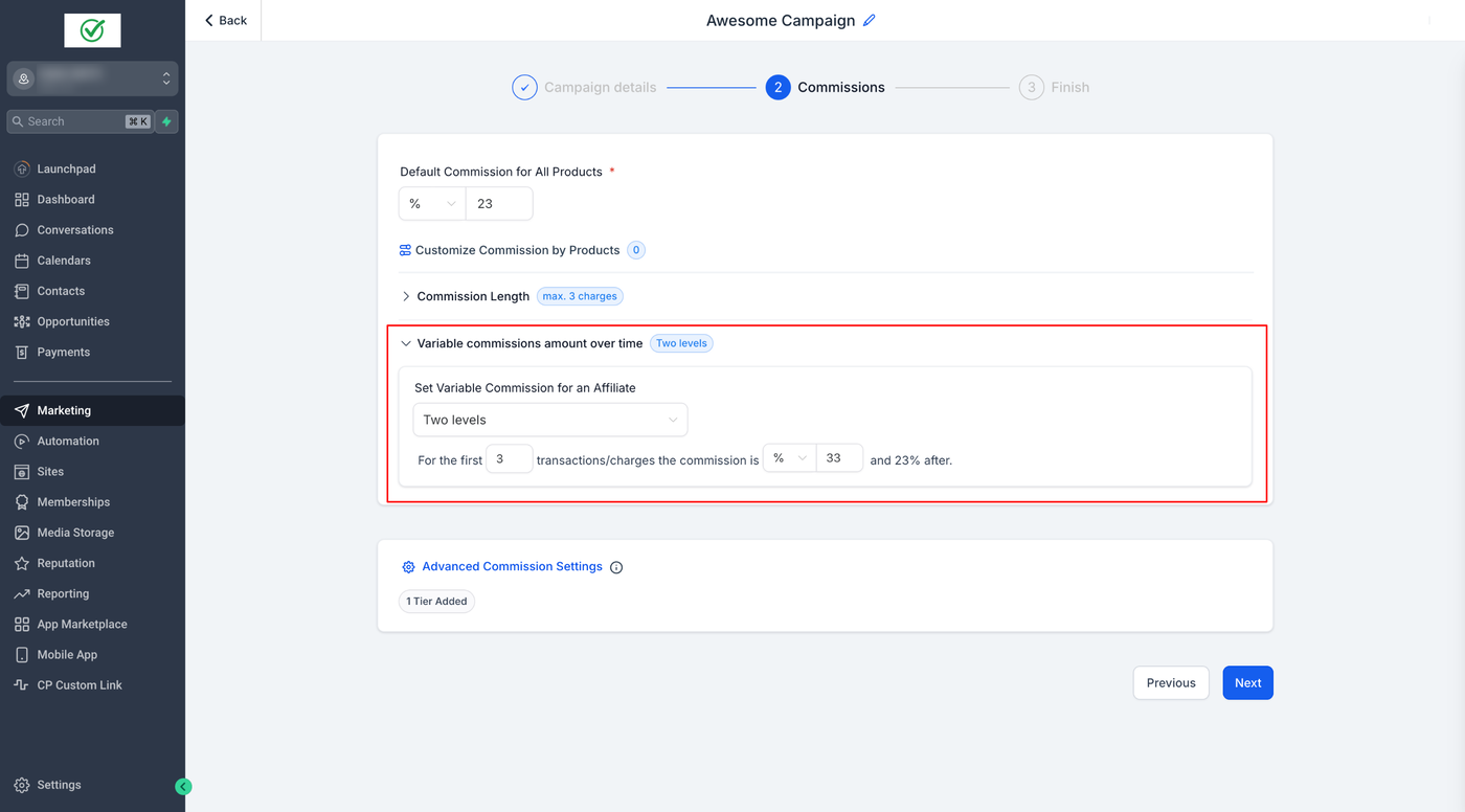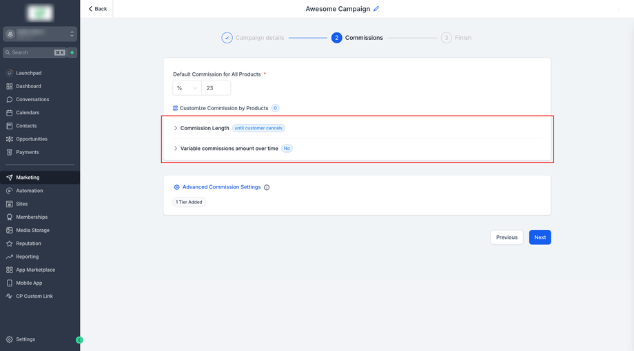 Speichern Sie die Kampagne, und Ihre aktualisierten Provisions-Einstellungen werden angewendet.