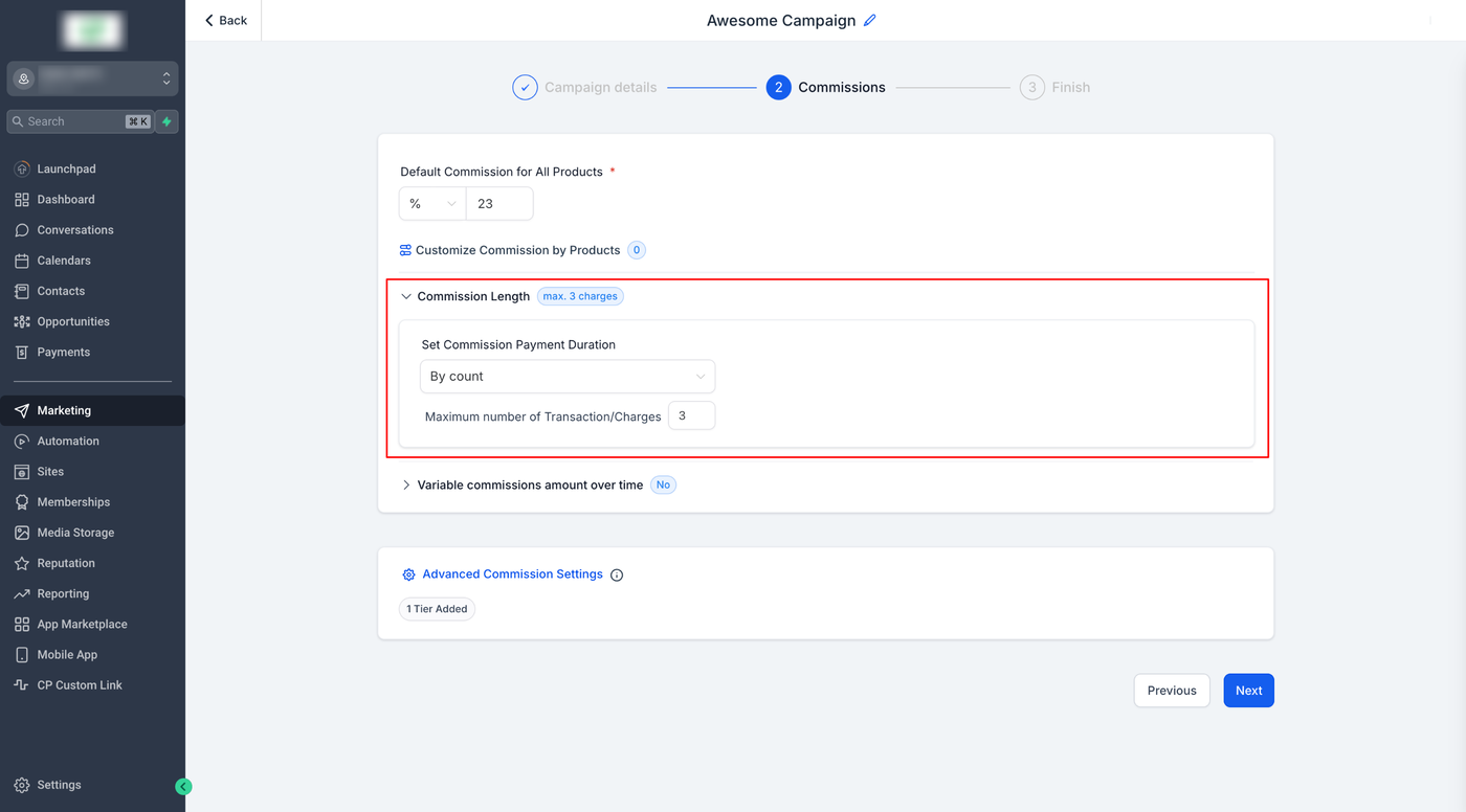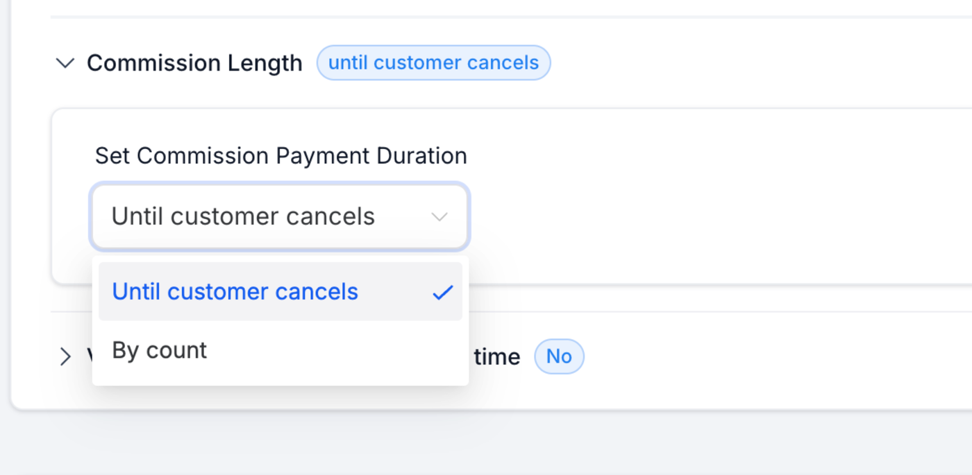 Kommissionsdauer: Bezahlen Sie Affiliates für eine begrenzte Anzahl von Transaktionen, anstatt unbefristet.