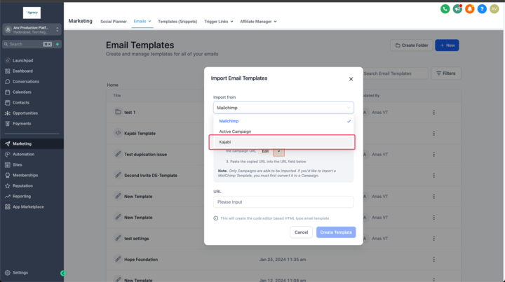 Wähle im Dropdown-Menü „Kajabi“ aus.