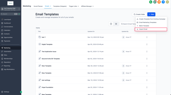 Navigiere in deinem Account zu Email Marketing → Templates.