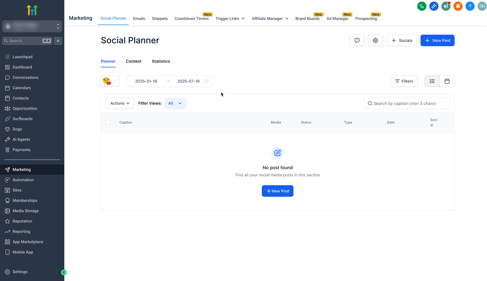 Klicke auf den Tab Social Planner.