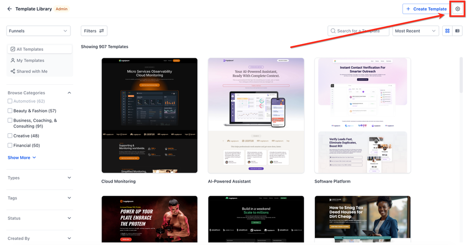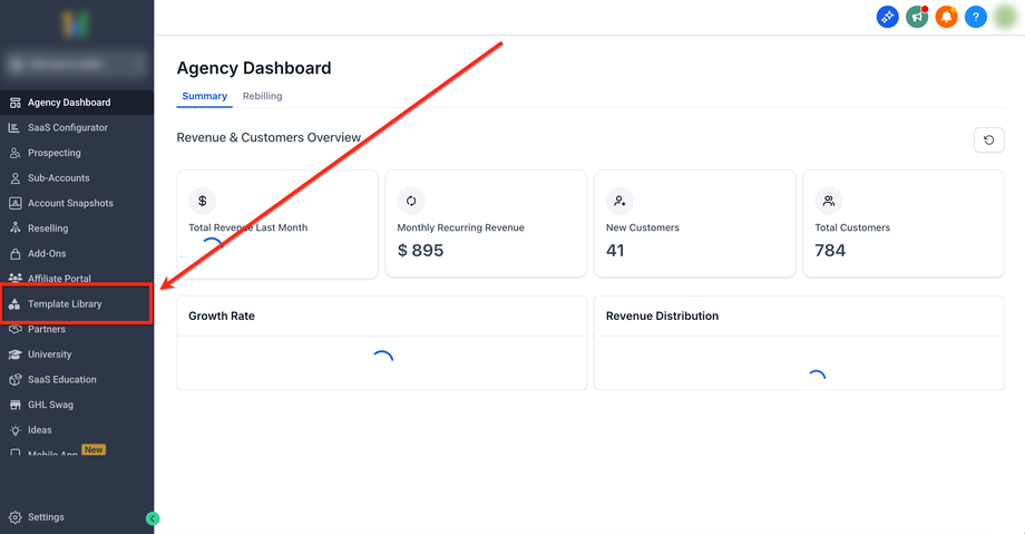 Im Agency Dashboard → Hauptmenü → Template Library auswählen
