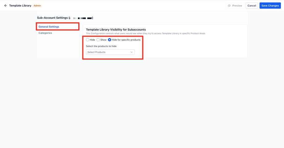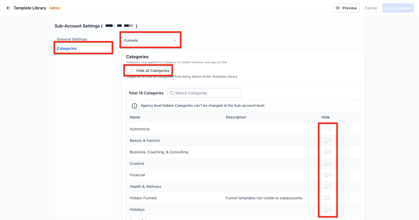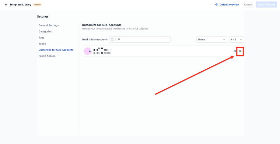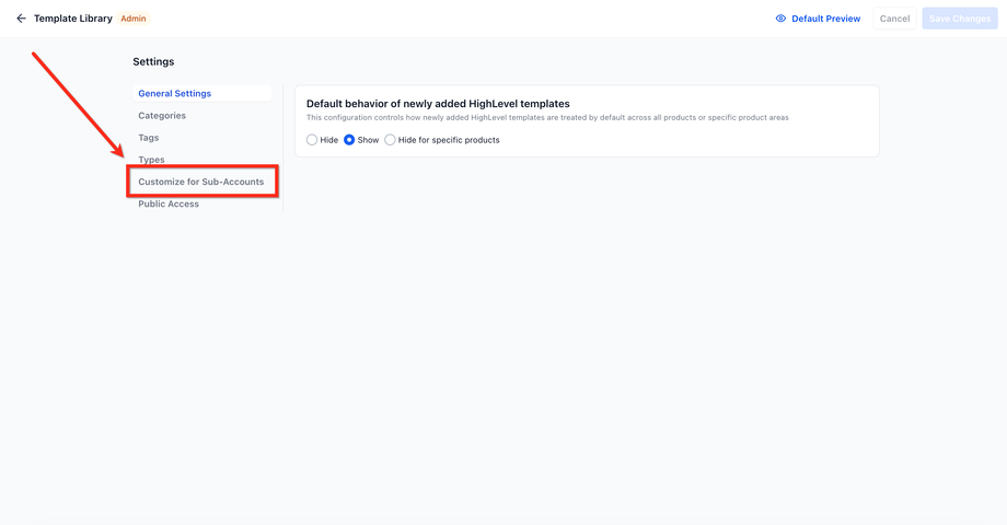 Nur Agency Admins können die Sichtbarkeit der Template Library für Sub‑Accounts konfigurieren