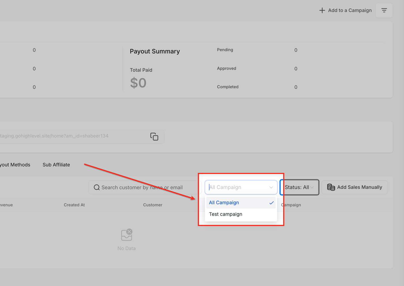 Nutze den Kampagnen-Filter, um Provisionen einer bestimmten Affiliate-Kampagne zu isolieren.