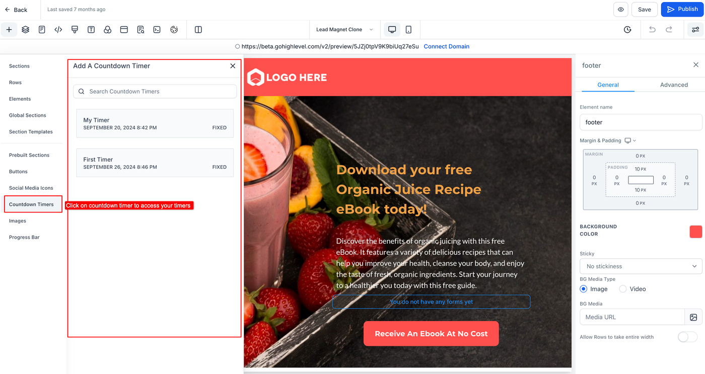Füge dasselbe Countdown-Timer-Element auf der aktiven Angebotsseite in deinem Funnel ein.