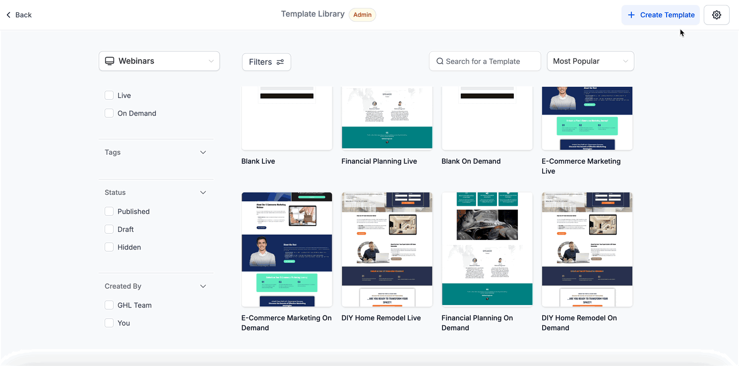 Integration in die Template-Bibliothek: Webinar-Templates sind zentral in der Template-Bibliothek verfügbar, leicht auffindbar und verwaltbar.