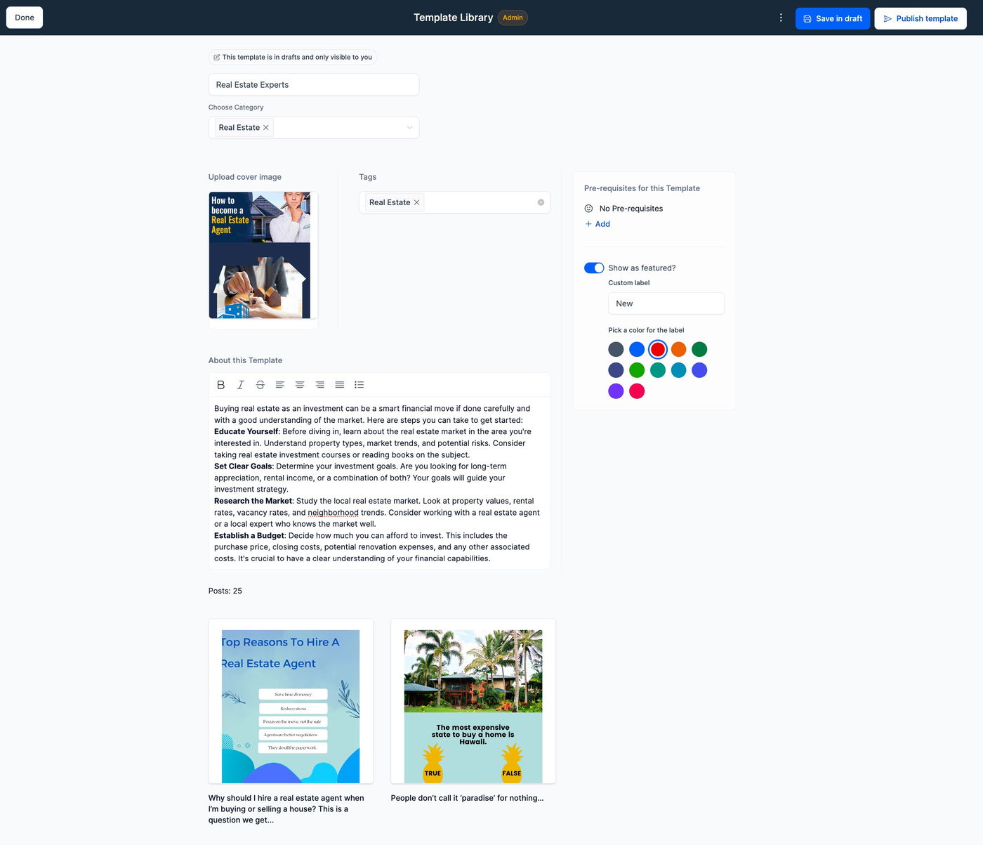Wenn Sie es als Draft speichern, wird es nur im Template Library Admin-Panel angezeigt, um spätere Bearbeitungen vorzunehmen.
