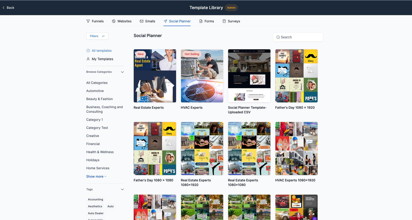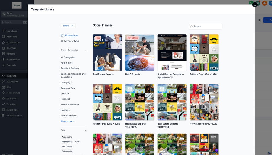 Ja, Sie können jetzt Templates ausblenden, die vom GHL-Team hinzugefügt wurden.