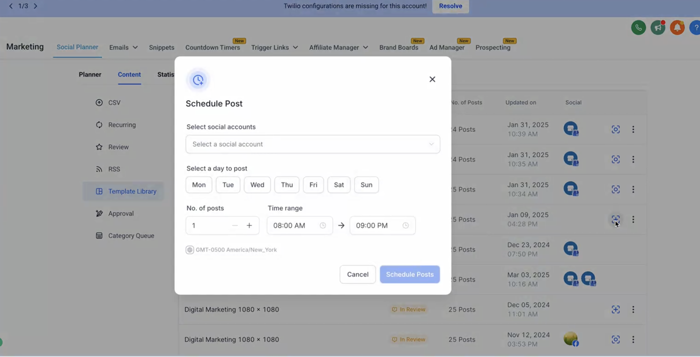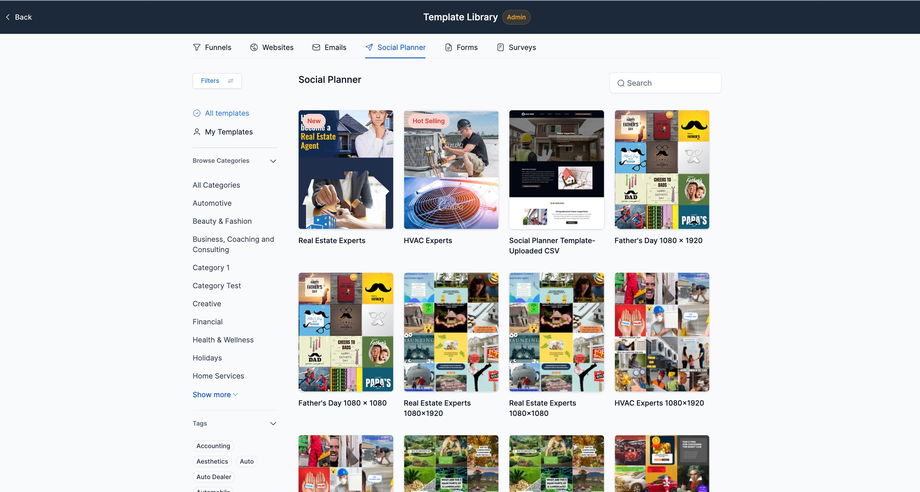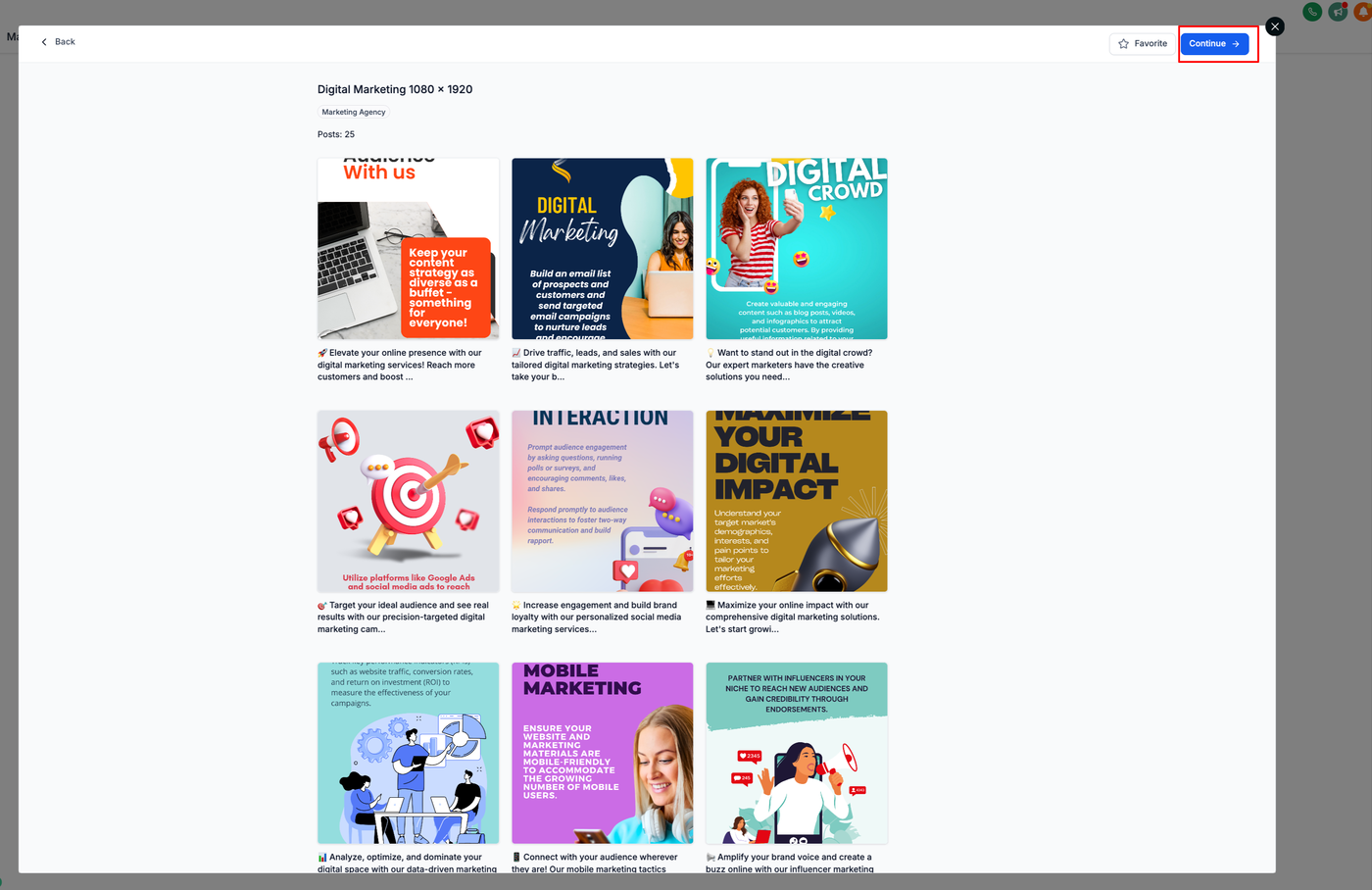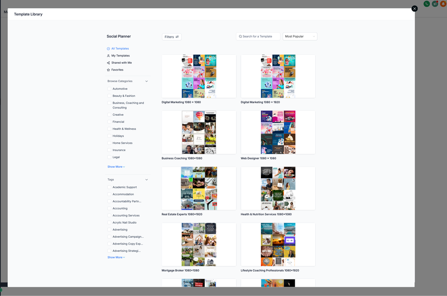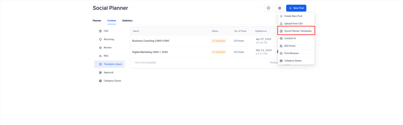 Wählen Sie in den angezeigten Optionen „Social Planner Templates“, um die verfügbaren Vorlagen zu durchsuchen.