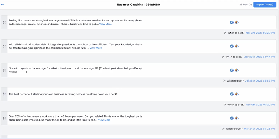 Sobald Sie zufrieden sind, klicken Sie auf „Import“, um den Beitrag abzuschließen und Ihrem Planner hinzuzufügen.