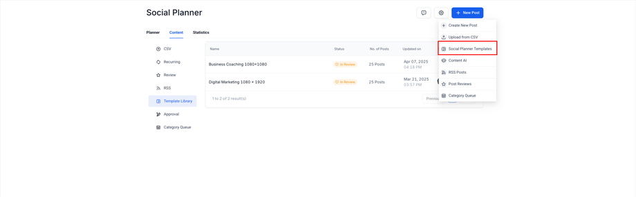 2. „Social Planner Templates“ auswählen