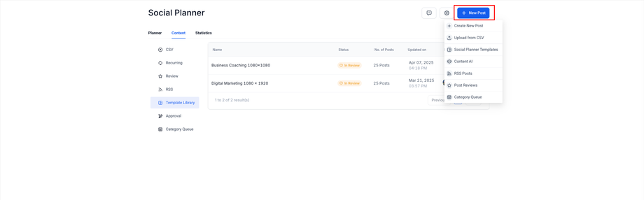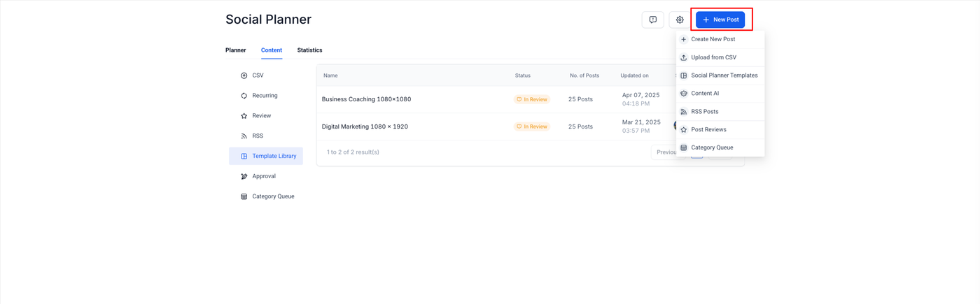 Und das ist noch nicht alles – Agency Owners können jetzt ihre besten Beiträge direkt zur Template Library hinzufügen, sodass leistungsstarker Content einfacher denn je wiederverwendet werden kann!