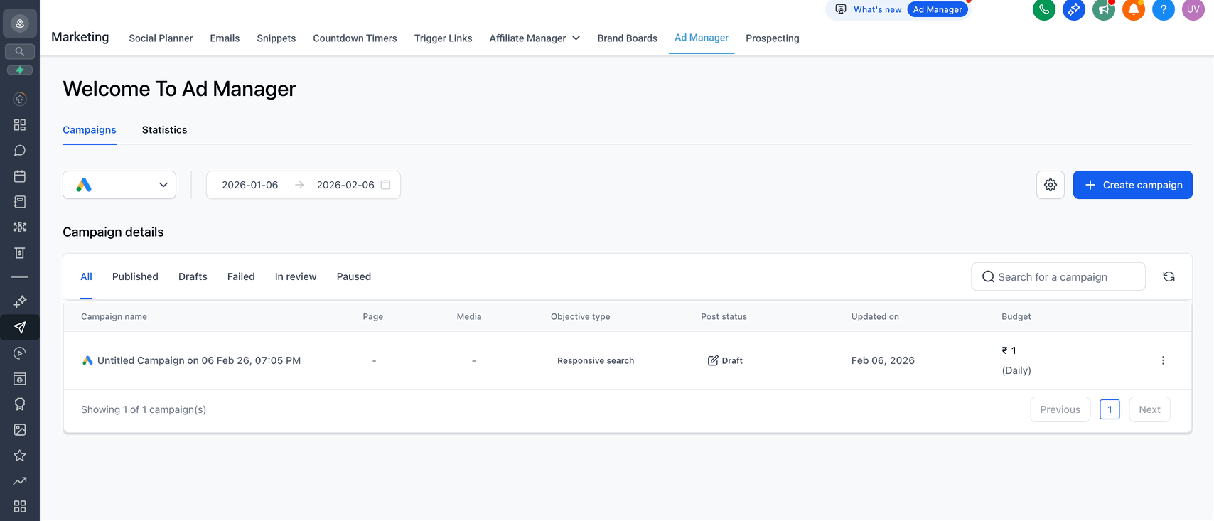 Gehe im linken Menü zu Marketing → Ad Manager.