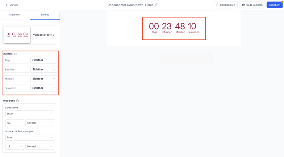 So änderst du Countdown-Timer-Beschriftungen